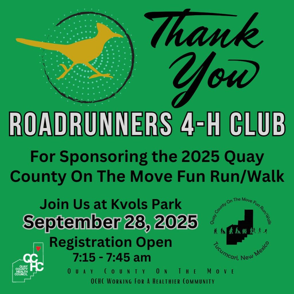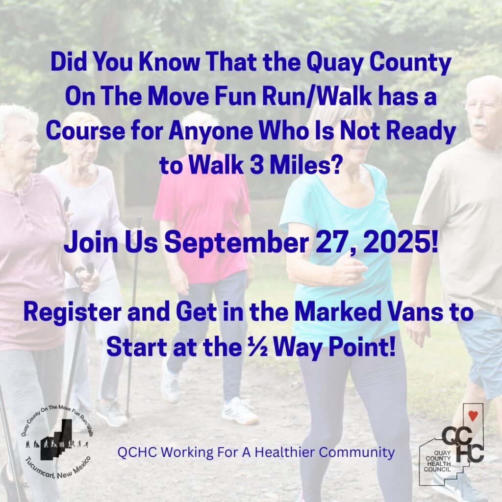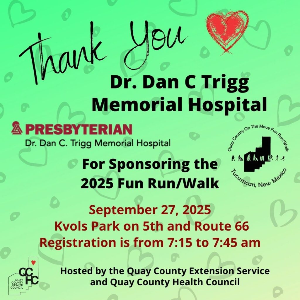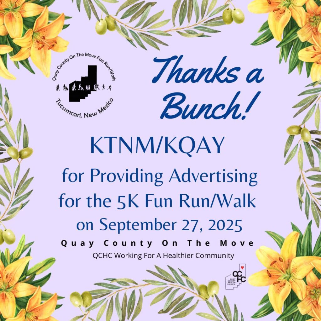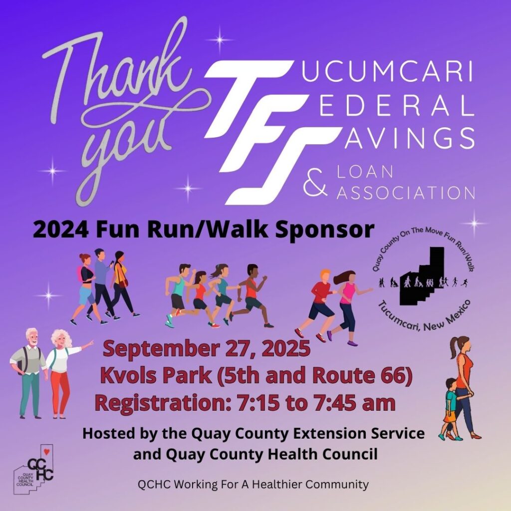 The 5K Fun Run/Walk is hosted by the Quay County Health Council, their Healthy Eating Active Living (HEAL) Committee and the Quay County Extension Service. For more information, call 575-815-4575.