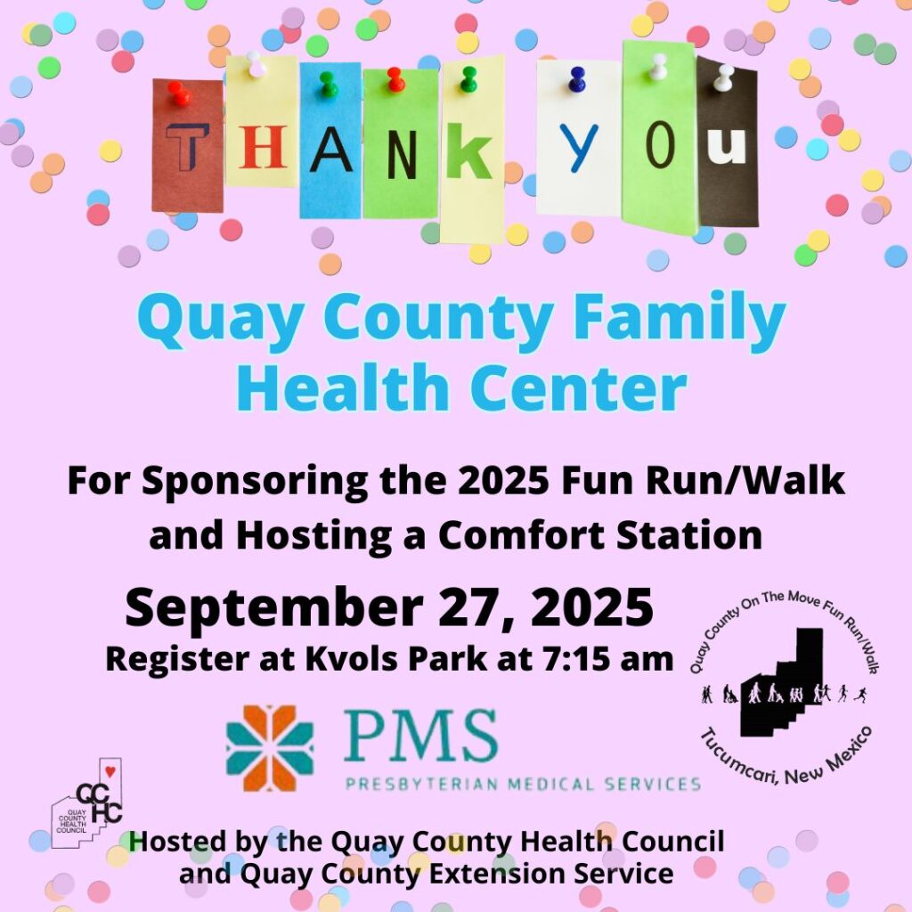 The Quay County Health Council is thankful to our many partners that help make this event a such a great success include Tucumcari Public Schools who are allowing our participants to use the restrooms in the gym.